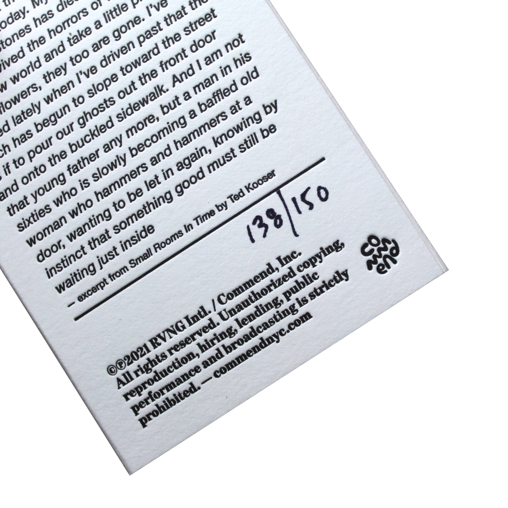 — Encased in a hand-numbered, letterpressed o-card