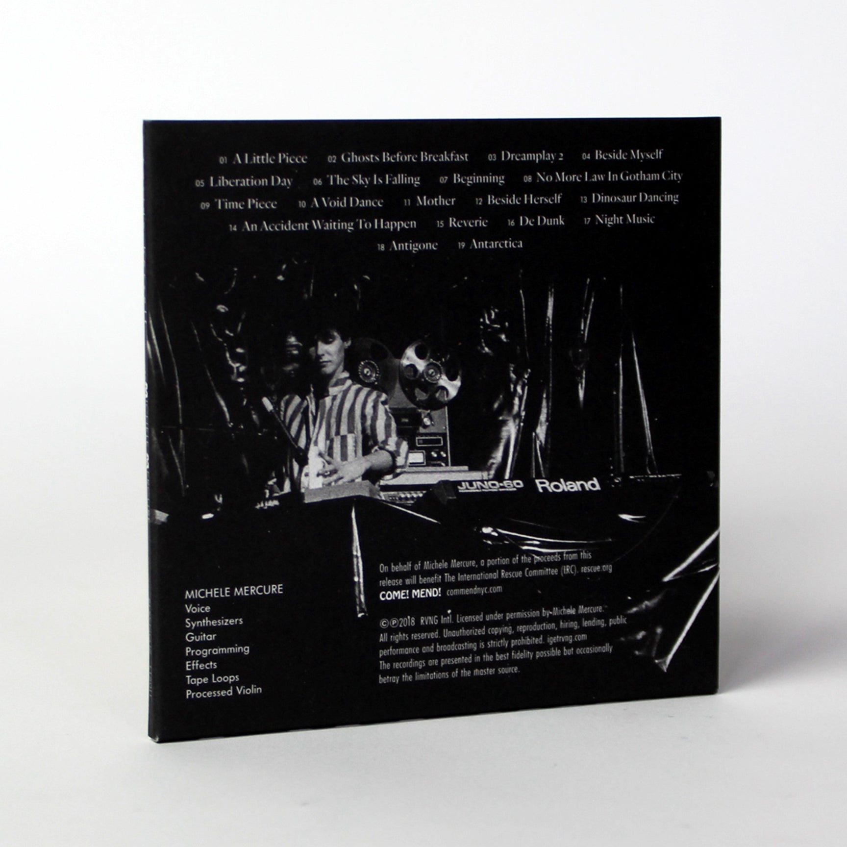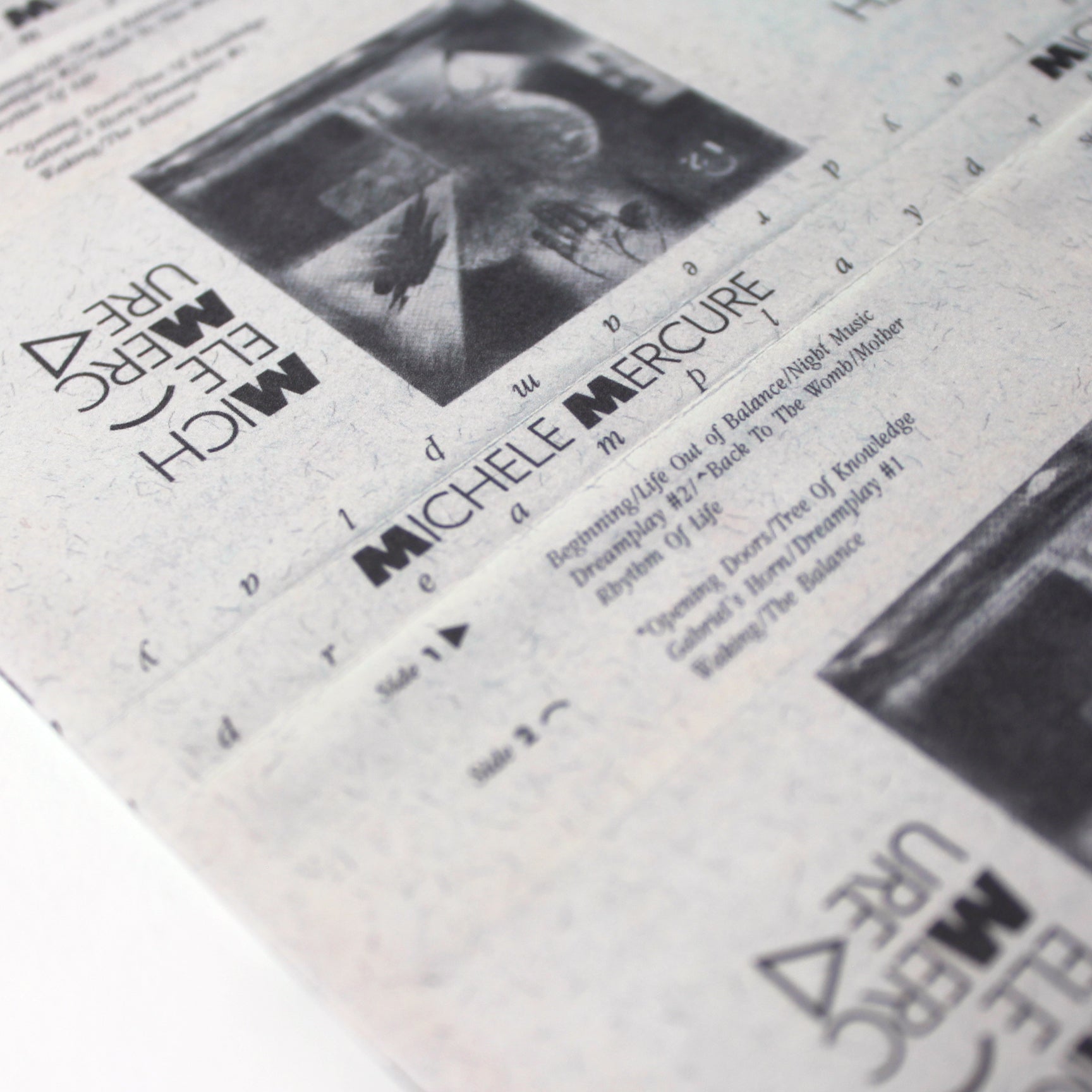 Mercure was a busy collaborator during the years surveyed by Beside Herself, making music for theater, performance, film, and TV animation, yet it was through her self-released cassettes that she established her music among like-minded artists abroad. Circulated through tape-trading networks assisted by insightful reviews in Eurock, a seminal music magazine covering progressive rock and electronic music scenes, these album-length releases included Rogue and Mint (1983), A Cast of Shadows (1984), Dreams Without Dreamers (1985), and Dreamplay (1990). Though unvarnished in fidelity (and now scarcely seen), these tapes showcased Mercure’s transportive aptitude within and beyond the limited sound recording medium.